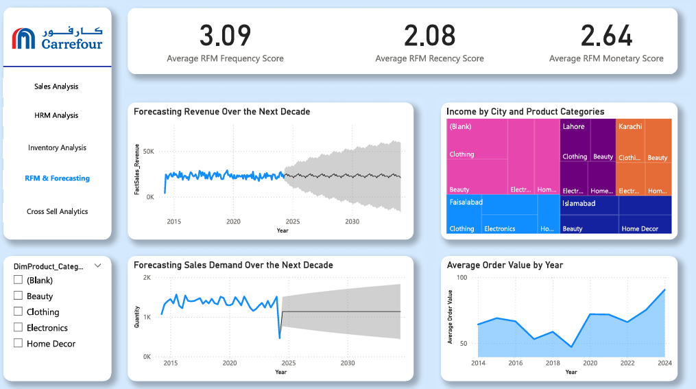 The Power BI project was structured around a well-organized star schema, ensuring optimal data retrieval and analysis efficiency. Fact tables captured essential transactional data, while dimension tables provided detailed contextual information such as customer demographics, product categories, and regional sales performance. Relationships between tables were precisely defined to support accurate aggregations and drill-down capabilities. DAX (Data Analysis Expressions) functions were employed to create dynamic measures and KPIs, enhancing the dashboard’s interactivity. Additionally, slicers and filters were integrated to allow users to customize views effortlessly, making the overall design both powerful and user-friendly.